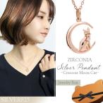 猫 ネックレス レディース シルバー 三日月 ネコ ピンク ジルコニア 人気 おしゃれ グッズ 猫ネックレス ネコBOX付